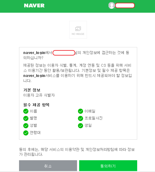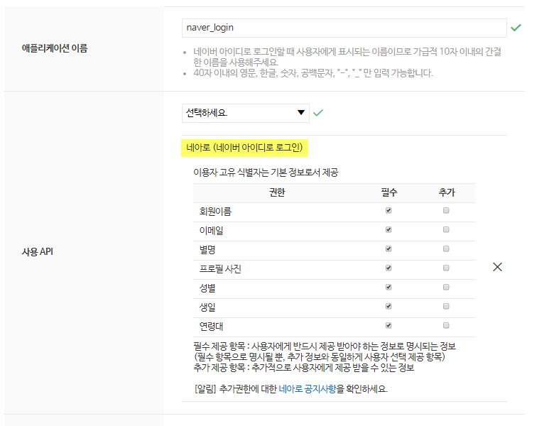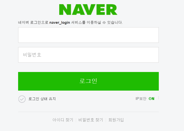 우리가 네이버 개발자 홈페이지에서 입력한 애플리케이션 이름인 'naver_login 서비스를 이용하 실 수 있습니다.'