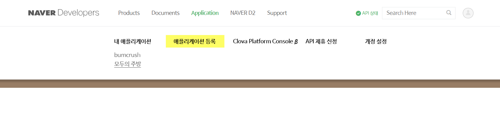 우선 네이버 홈페이지에 들어가서 애플리케이션 등록을 해줍시다!