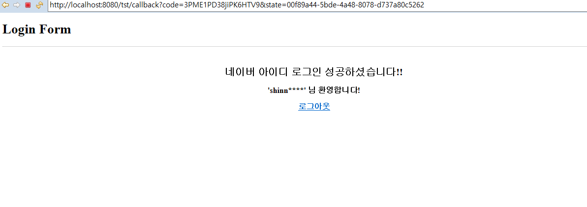 <h2> 네이버 아이디 로그인 성공하셨습니다!! </h2>