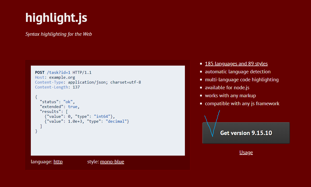 highlight.js를 이용하여 코드 하이라이트가 예쁘게 잘 적용이 된 것을 확인 할 수 있습니다.