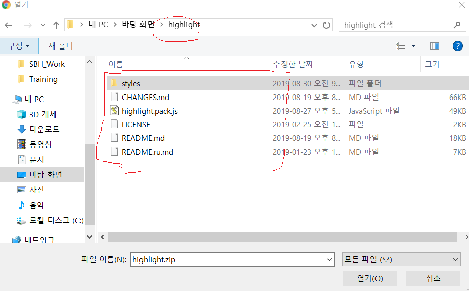 다운받은 highlight.zip 파일의 압축을 풀어놔주세요!
