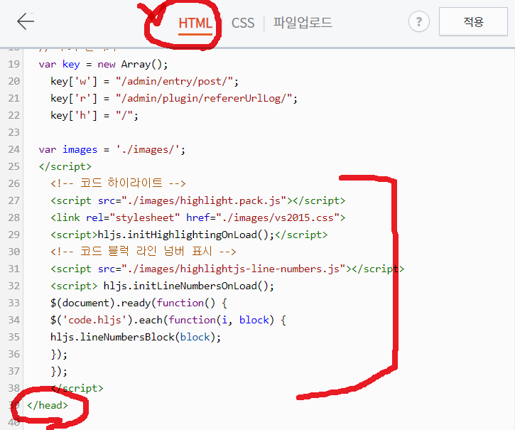 4. highlight.js 코드 블럭 적용 (티스토리 글 쓸때 )