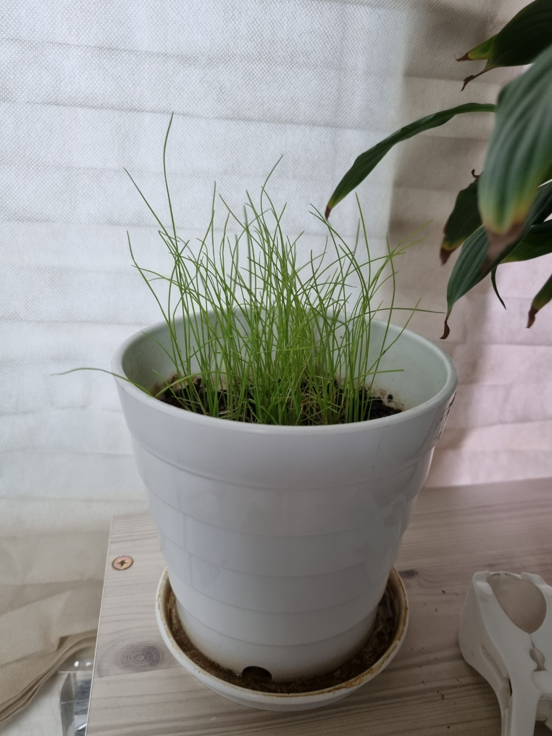 아마 화분이 작아서 부추가 영양분을 취하기도 쉽지 않기 때문이 아닐까 싶다.. (그리고 부추 품종 문제가 있을 수도..?)