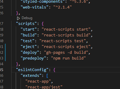 "deploy": "gh-pages -d build", //빌드 한것(build폴더)을 gh-page에 배포해라