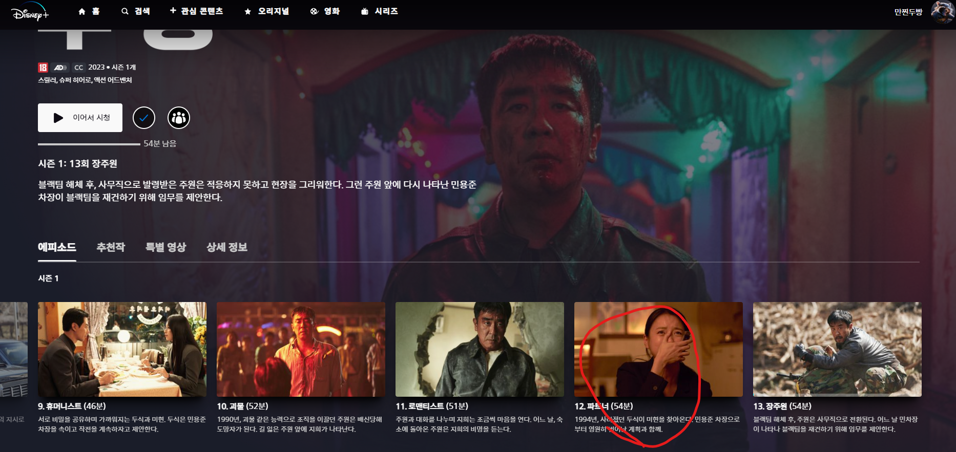 1. 일단 멈춘 화면에서 '다음 에피소드 보기' 클릭