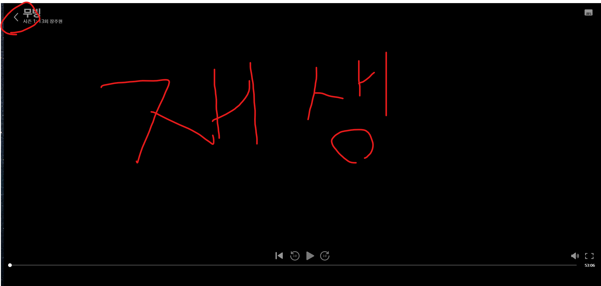 2. 그럼 다음 화가 재생이 된다.. 희한하게 얘는 잘 재생이 된다.. 재생 됨을 확인했으면 '뒤로가기' 클릭