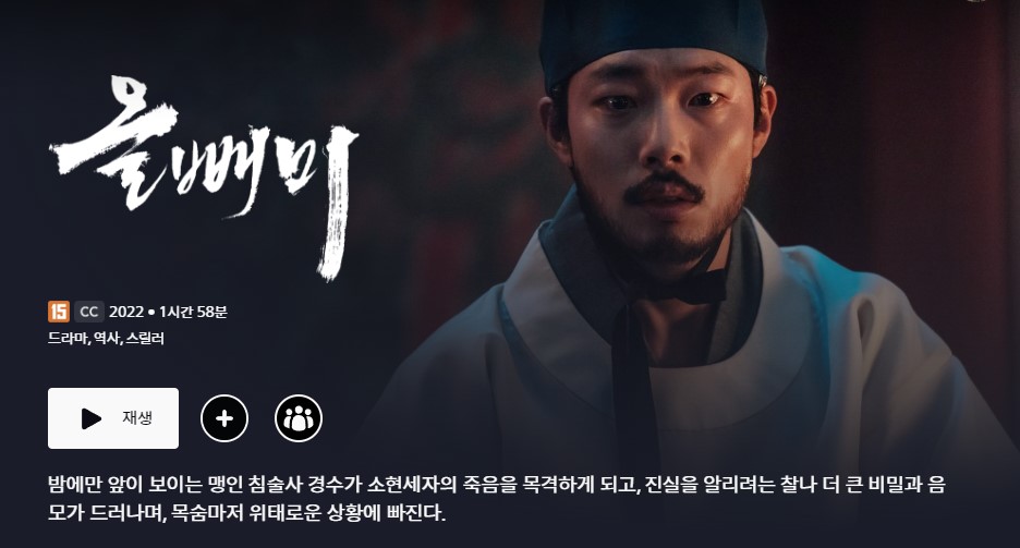 아 한국영화라서 디즈니플러스에서 언젠간 내려 갈 거 같긴 한데, 올빼미도 재밌게 봤다.