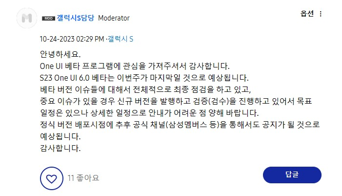 현재 One UI 6.0 베타 9차 까지 나왔고