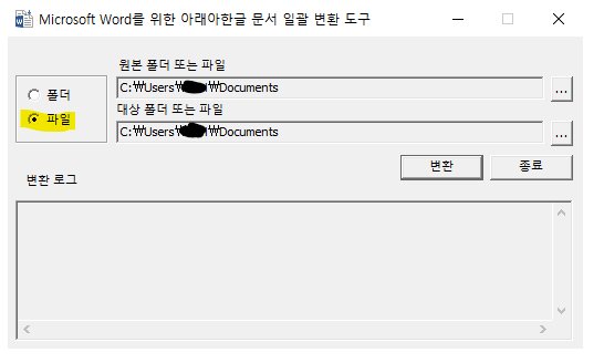 - BATCHHWPCONV 프로그램을 실행하면 '폴더 or 파일' 을 고를 수 있다.