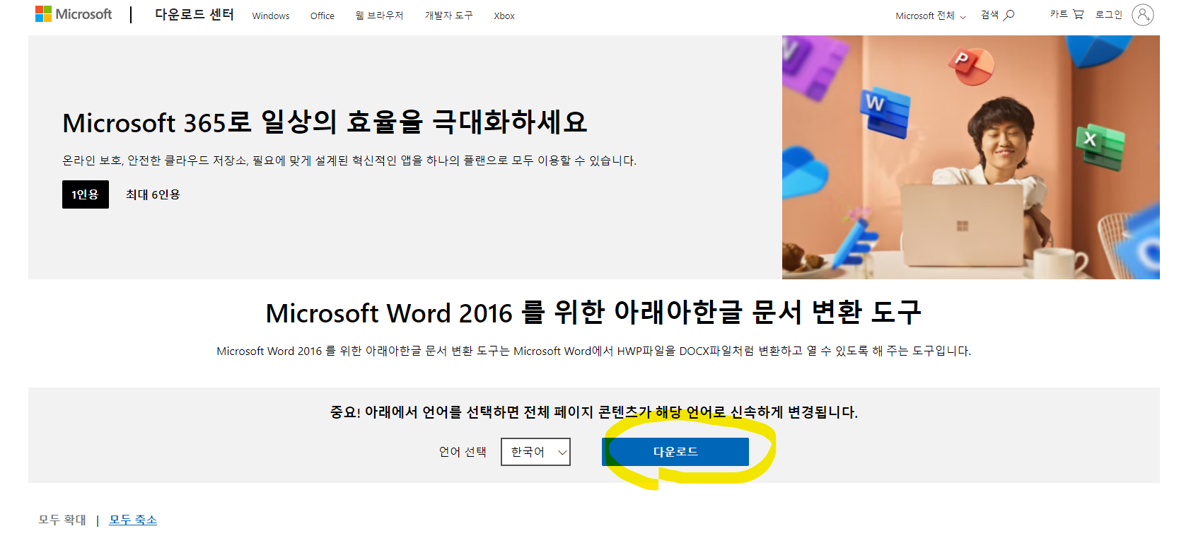 1. 한글 -> 워드 변환 프로그램 다운로드