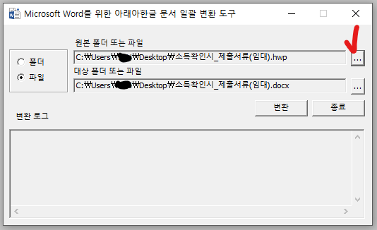 - 옆에 '...' 버튼을 눌러서 변환할 파일을 찾는다.