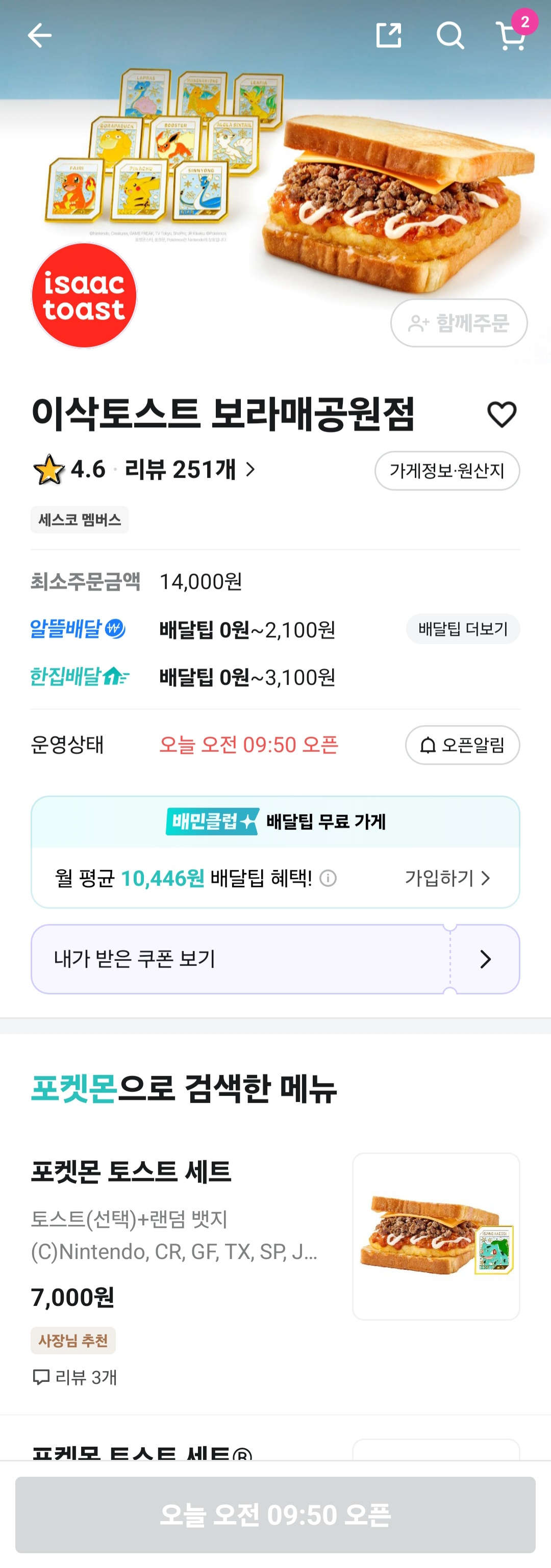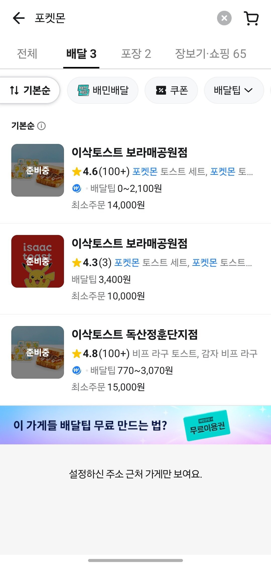 이삭 토스트 포켓몬 세트 - 배달의 민족 주문 하는 법