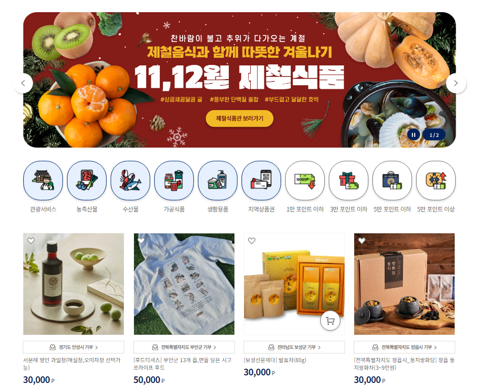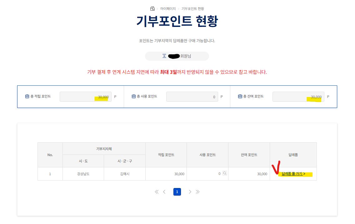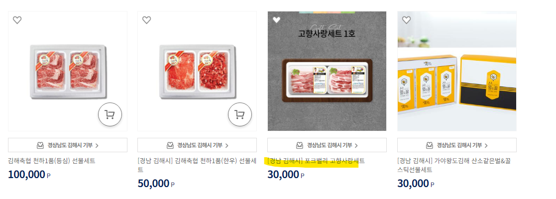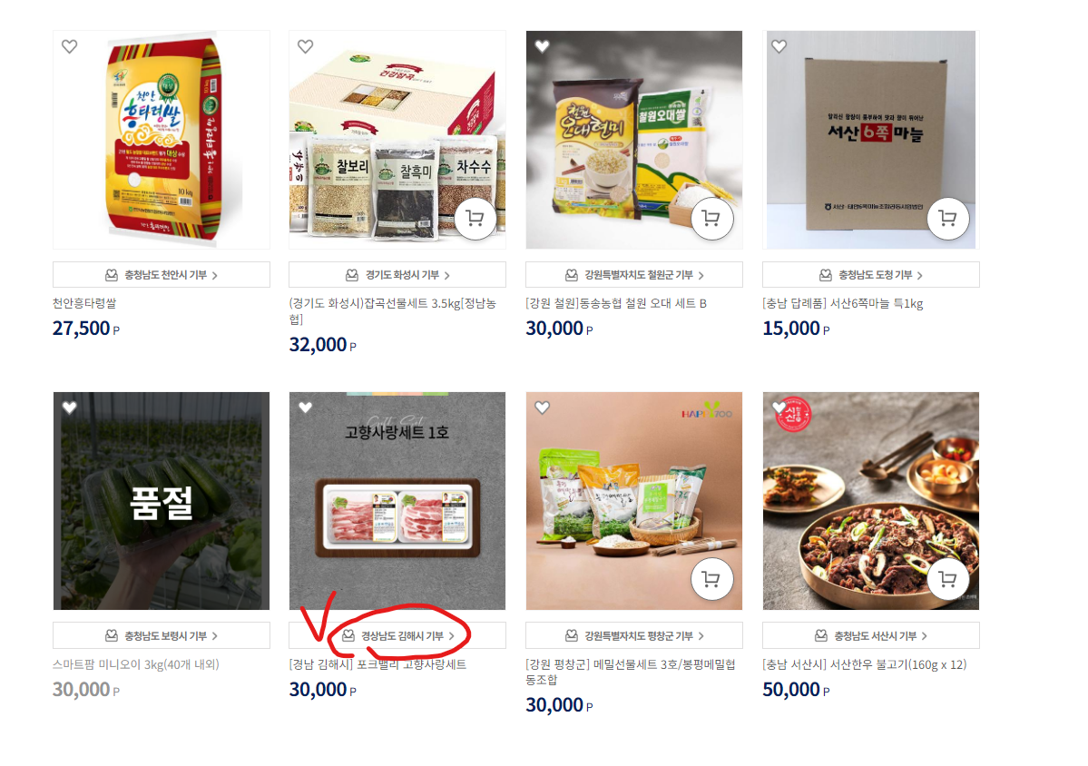 - [❗주의❗] 본인이 기부한 지역의 답례품만 살 수 있으니, 꼭 원하는 답례품 확인 후 해당 지역에 기부할것 !
