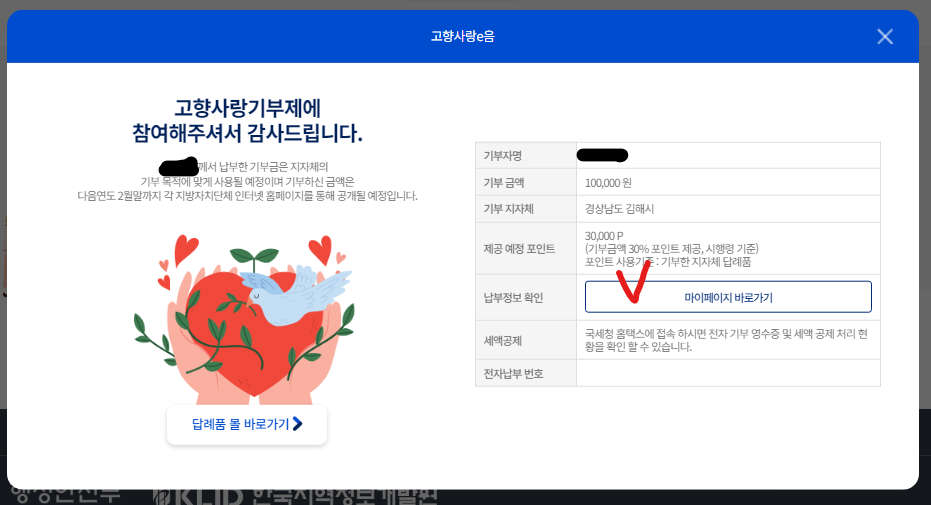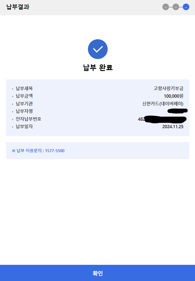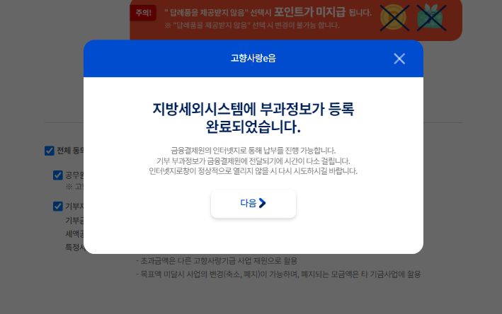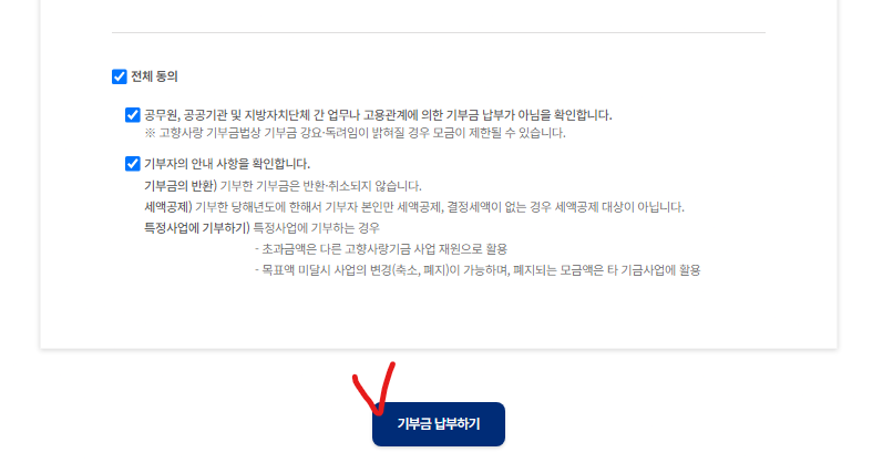 ✅ 6. 기부금 납후하기 클릭