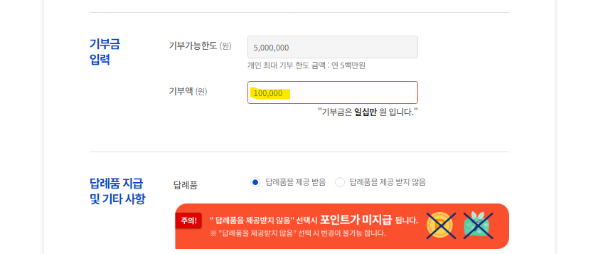 ✅ 5. 기부금 입력 (100,000원)