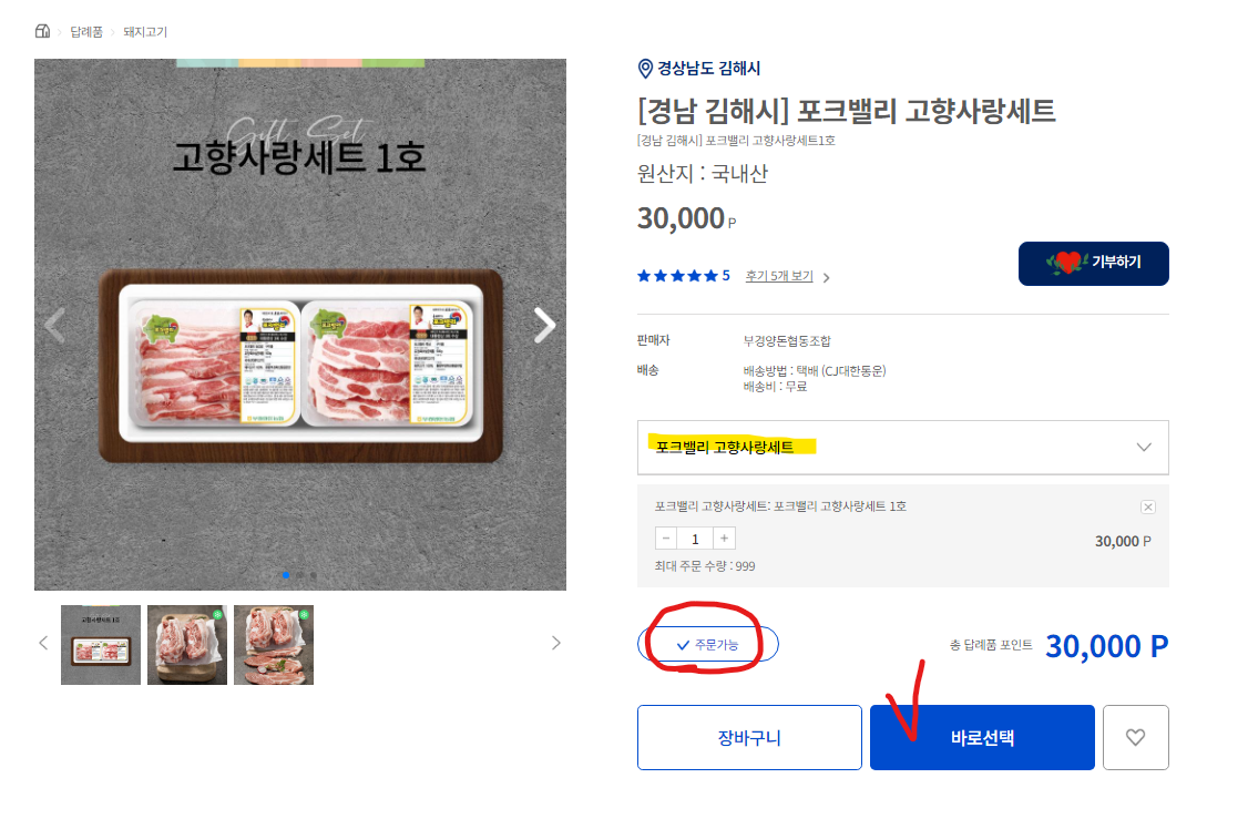 - 나는 3만포인트 꽉채워서 살수있는 '경남 김해시 포크밸리' 선택! (고기 좋아 😆)