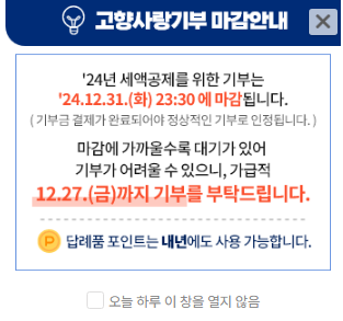 💡 2024 고향사랑기부 마감일
