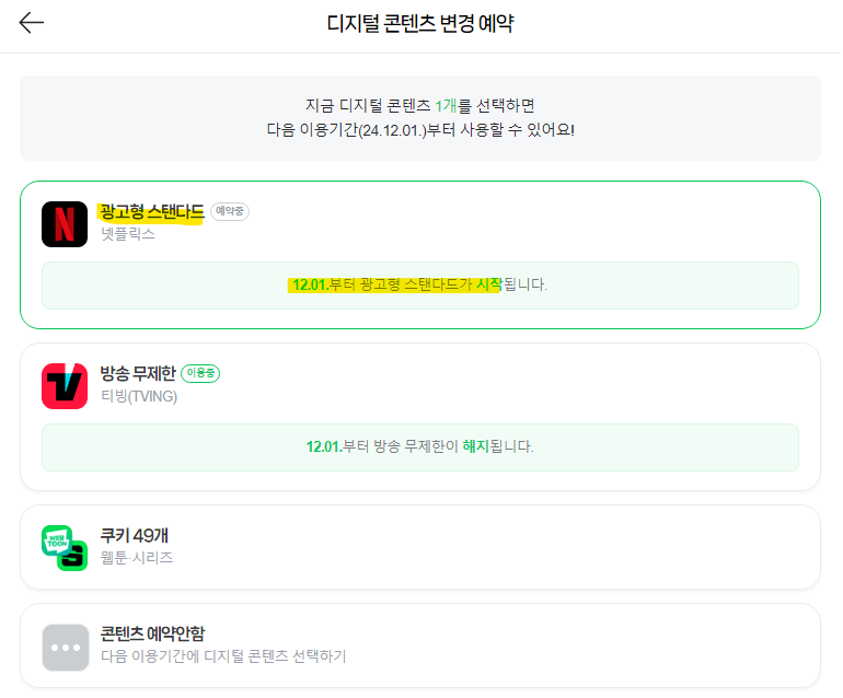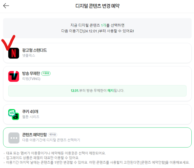 ✅ 지금 티빙 보고 계신분들은 미리 '넷플릭스로 디지털콘텐츠 변경' 및 '콘텐츠 예약안함' 을 해두셔야합니다.