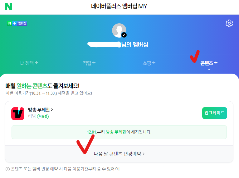 다만, 현재 네이버멤버쉽을 이용해서 '티빙'을 보고 계신분들은 12월 부터 볼 수 있습니다.