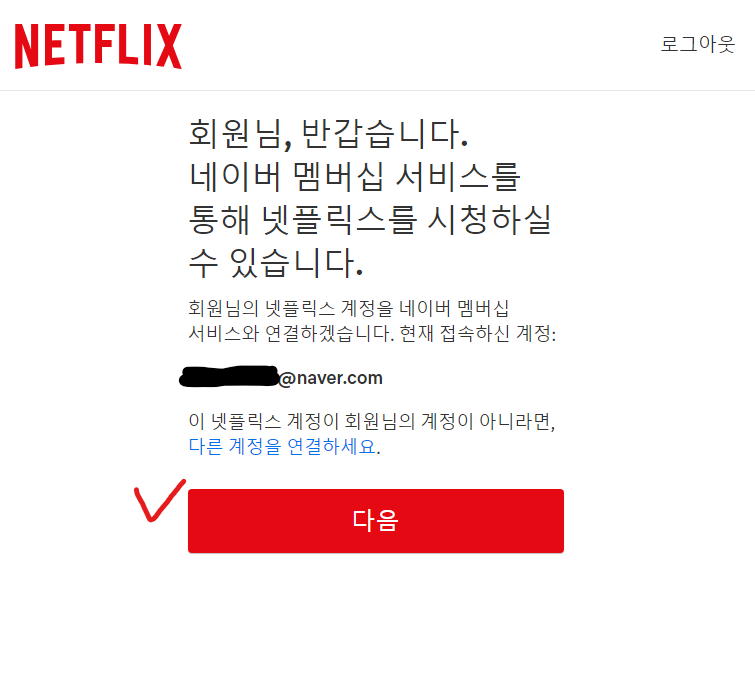 ✅ 넷플릭스로 이동 > 연결하려는 계정이 맞는지 확인!